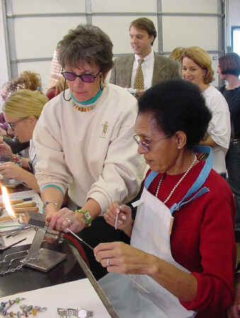 After a little coaching from Leslie...and help lighting the torch, the lovely Marta made a couple of beads!